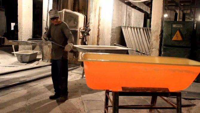 На современных заводах применяется порошковое покрытие для чугунных ванн. Оно состоит из специальной полимерной краски, которая наносится на поверхность ванны методом электростатического распыления.